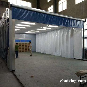 伸缩房新型系列大全移动喷漆房设计安装方案:伸缩式喷漆房是专门为解决较大型工件移动运送困难而研制的实用型产品,喷漆区可根据产量大小, 任意调整,充分利用生产场地和操作空间! 伸缩式喷漆房整体为框架传动结构,每组框架间均有阻燃PVC布密封连接,安装快捷、外形美观,结构精巧,使用方便,制造成本低,节约投资!