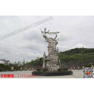 重庆华阳景观雕塑公司设计、制作、安装的武隆仙女雕塑,以漂亮的服饰、优美的飘姿,驾临到仙女山永驻此地。头手构成山字,动态和目光都向着仙女山方向,给游客产生联想和导向感;山峰融入了仙女山喀什特地貌特征和石柱、天桥、地缝景点;人崖浑然一体,形式简洁而内涵丰富;表意上讴歌仙女的善和爱;本义暗喻仙女山人的善良醇朴、乐施奉献的高贵品质;以及展示仙女山人满怀深情、喜迎中外宾客的精、气、神。